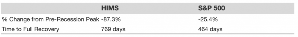 HIMS saw an impact slightly better than the S&P 500 index during various economic downturns. We assess this based on both (a) how much the stock fell and, (b) how quickly it recovered. Also see – Buy or Fear HIMS Stock