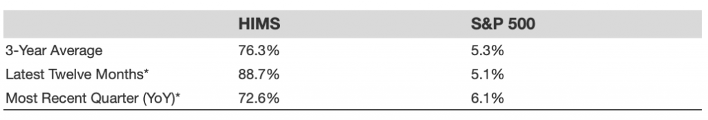 - Hims & Hers Health has seen its top line grow at an average rate of 76.3% over the last 3 years