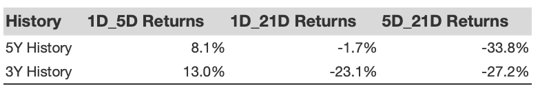 - Negative One-Day Return (50% of instances): Median loss of -3.3%.
