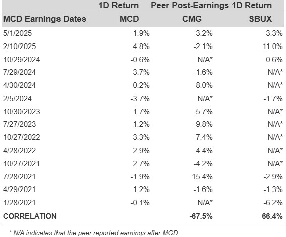 MCD Correlation With Peer Earnings