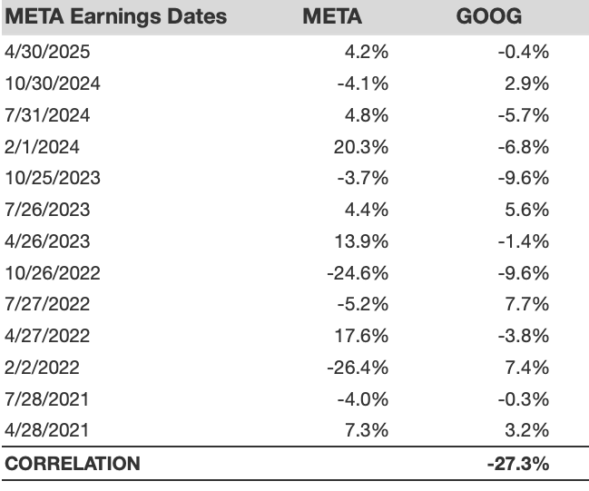 META Correlation With Peer Earnings