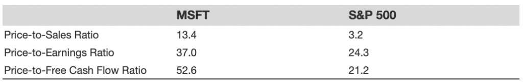 This table highlights how MSFT is valued vs broader market. For more details see: MSFT Valuation Ratios