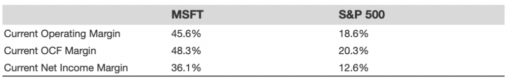 - MSFT last 12 month operating income was $129 Bil representing an operating margin of 45.6%