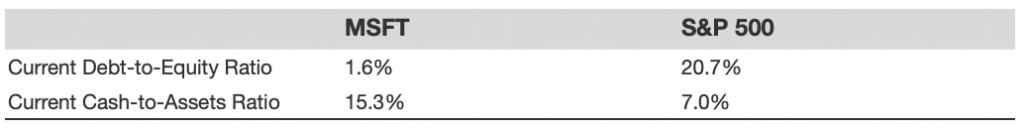 - MSFT Debt was $61 Bil at the end of the most recent quarter, while its current Market Cap is $3.8 Tril. This implies Debt-to-Equity Ratio of 1.6%