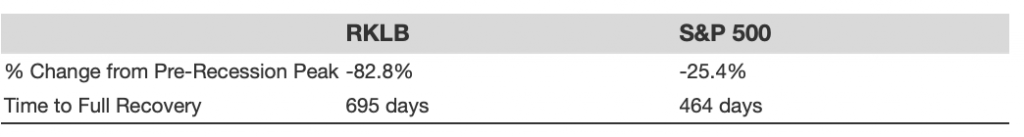 - RKLB stock fell 3.2% from a high of $10.44 on 16 December 2020 to $10.11 on 31 December 2020 vs. a peak-to-trough decline of 33.9% for the S&P 500.